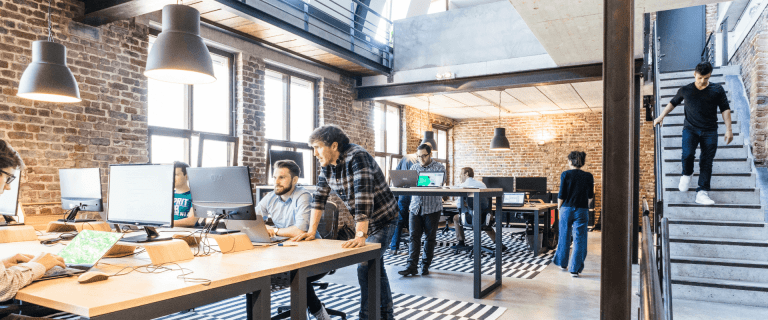 Two men working in an office, enjoying Truespeed's ultrafast, ultra-reliable full-fibre broadband